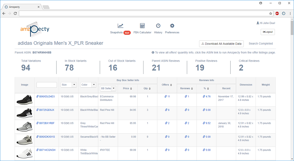 Note: Amzpecty Chrome Extension version 3.0 is required to run Search Variant Information.