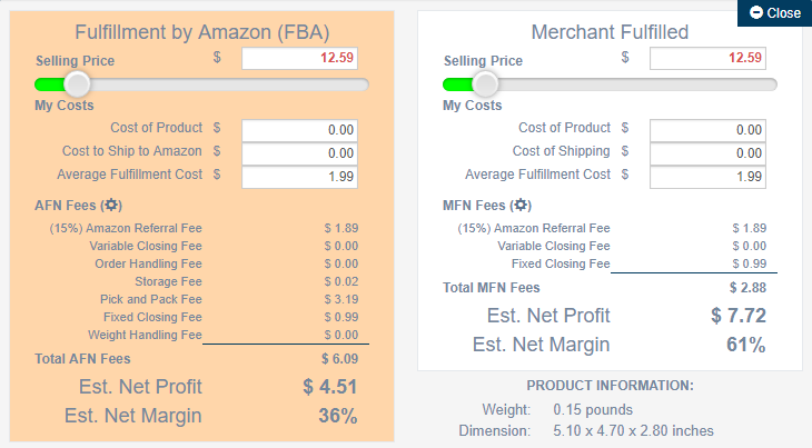 Amazon Fees and Profit Calculator enables users in 1-click to list the estimated Amazon Fees and eventually determine the estimated profits.